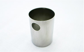 ステンレス材を径の4倍以上絞り上げた試作品。