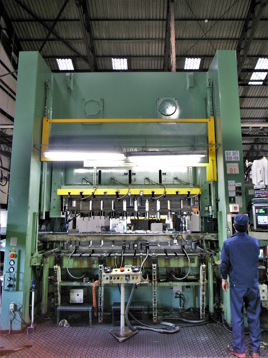 上記製品を加工したプレス機はこちら。弊社所有プレスで最大の300tトランスファープレスです。