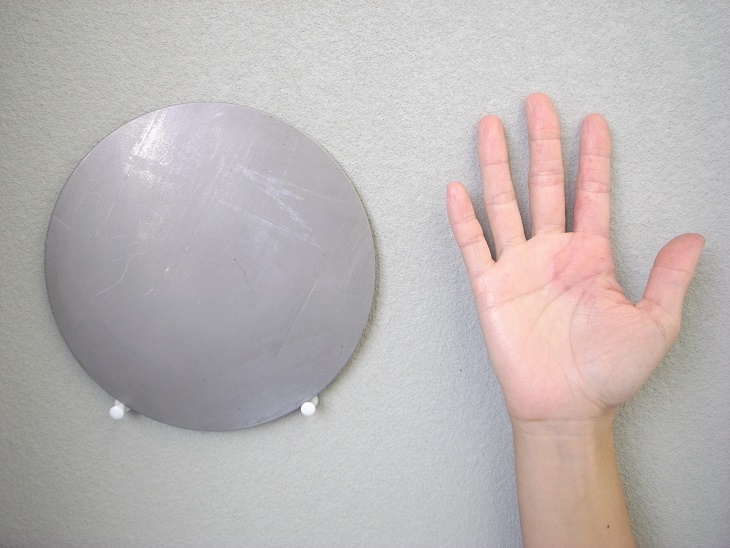 写真(左)は本製品のブランクで、手のひらより少しはみ出す大きさです。