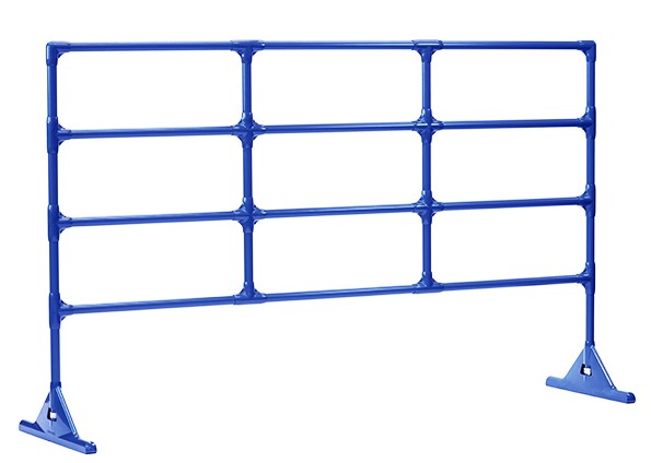 紹介しました部品はイベント会場や設営現場、警備現場などあらゆるシーンで活躍するフェンスに使用されています。採用されたのは『新型イレクターフェンス』と言われる製品で、実は上記部品以外にももう1点弊社加工部品をご使用いただいています。従来品に比べ20%も軽量化され設置や撤去が楽になると同時に、三角形の足元を「90°固定」と「フリー」に設定でき倒れにくい設計にもなっているとのことで、この 「90°固定」と「フリー」の設定に先ほどご説明させていただいた部品が一役かっているのです。※右写真中央